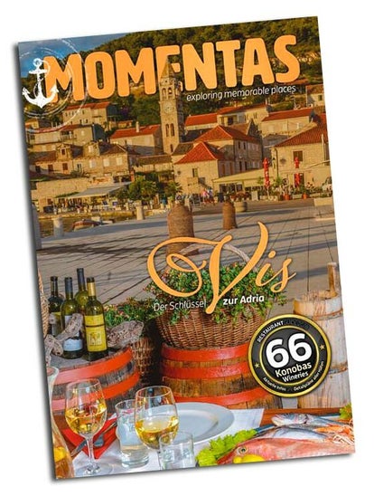 Vis, lange die Insel der großen Geheimnisse. Militärstützpunkt und isoliert. Doch dies hat sich inzwischen geändert. Seit mehr als 30 Jahren hat sich diese wirklich sehenswerte Insel touristisch entwickelt. In dieser Ausgabe von Momentas werden 66 Konobas vorgestellt und bewertet. Zusammen mit wichtigen Infos und in gewohnter Qualität ist dies ein empfehlenswertes Produkt, nicht nur für Nautiker.