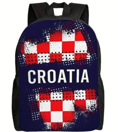Stilvoller Kroatien-Flaggen-Rucksack - Marineblau mit rot-weißem Karomuster, strapazierfähiges Polyester, verstellbare Träger, ideal für Reisen, Schule oder Freizeit, Reiserucksack