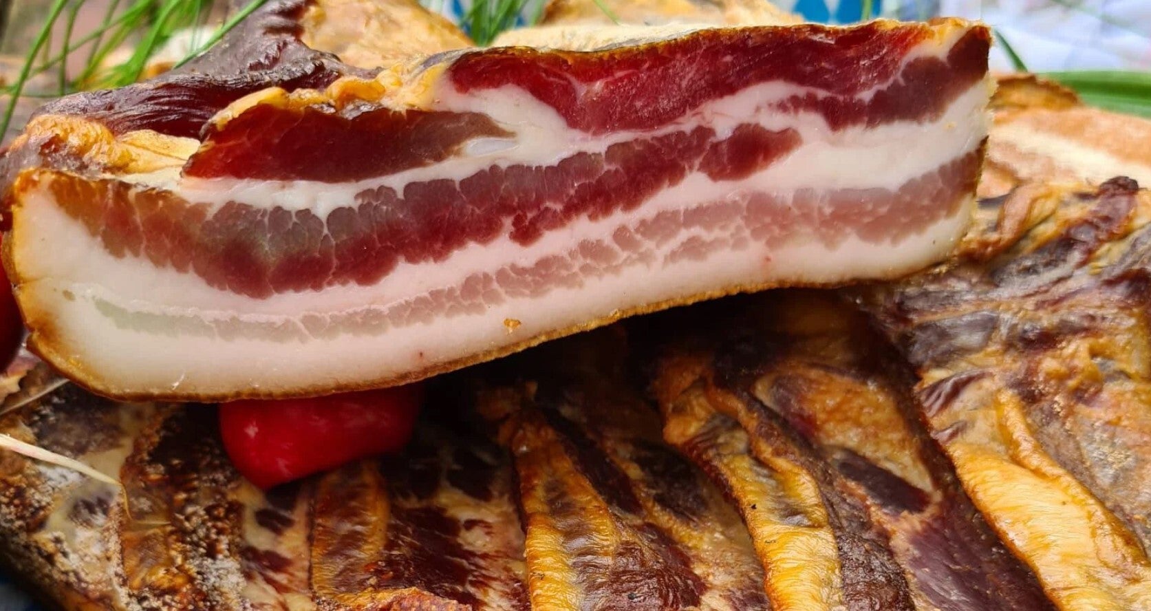 Dieser Seljak (Bauern) Speck ist berühmt für seinen einzigartigen Geschmack. Er stammt aus der Nähe des Ortes Drnis in Dalmatien aus der Manufaktur BEL-CRO. Die Herstellung dieser Spezialität basiert zum einen auf der Qualität des Fleisches von heimischen Schweinen und zum anderen die natürlichen Begebenheiten des dalmatinischen Hinterlandes. Selbstverständlich kommt beim räuchern nur bestes und aromatisches Buchholz zum Einsatz.
