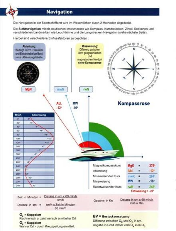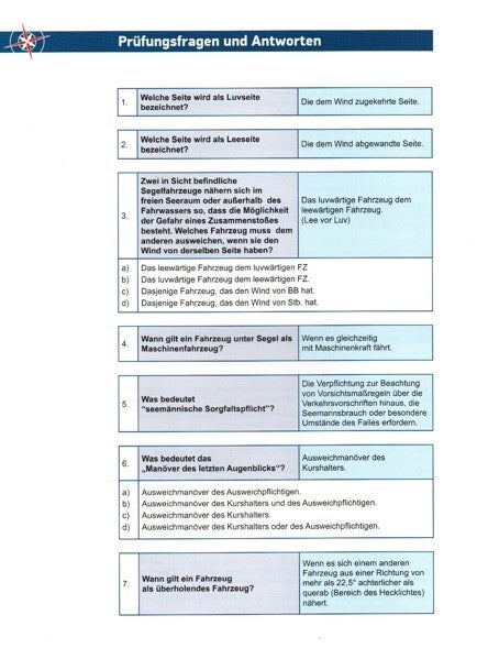 48 verschiedene Fragen (mit Antworten), zzgl. navigation und Rechte und Pflichten des Skippers.